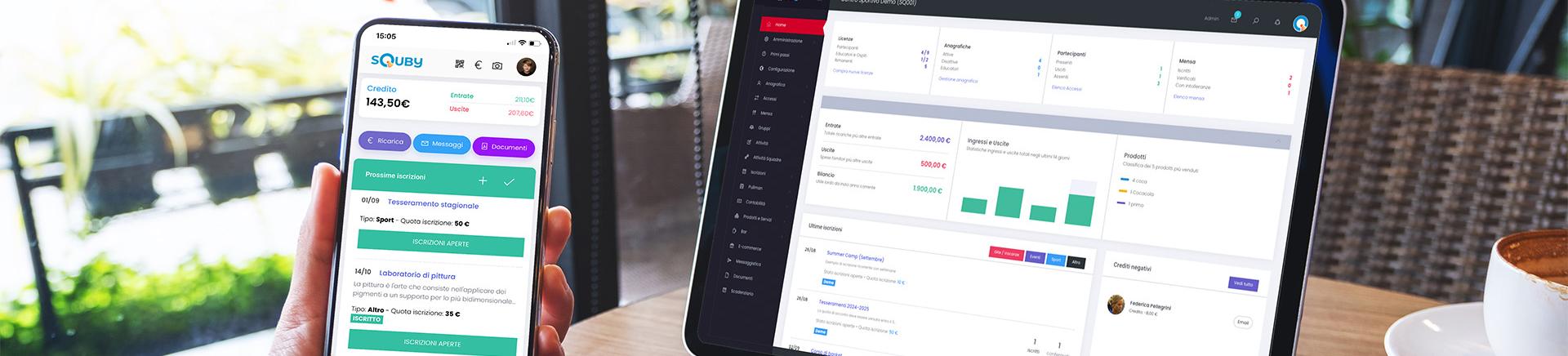 SQUBY è un software che semplifica la gestione di iscrizioni, pagamenti, comunicazioni e migliora il controllo accessi tramite un braccialetto.