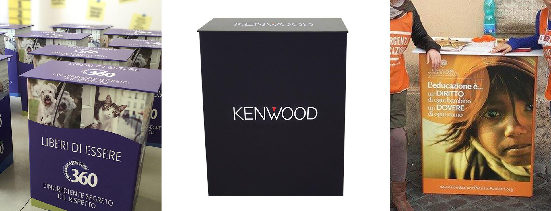 Banchetto promozionale, facilmente assemblabile a incastro. Leggero e resistente. Personalizzabile con stampa digitale.
