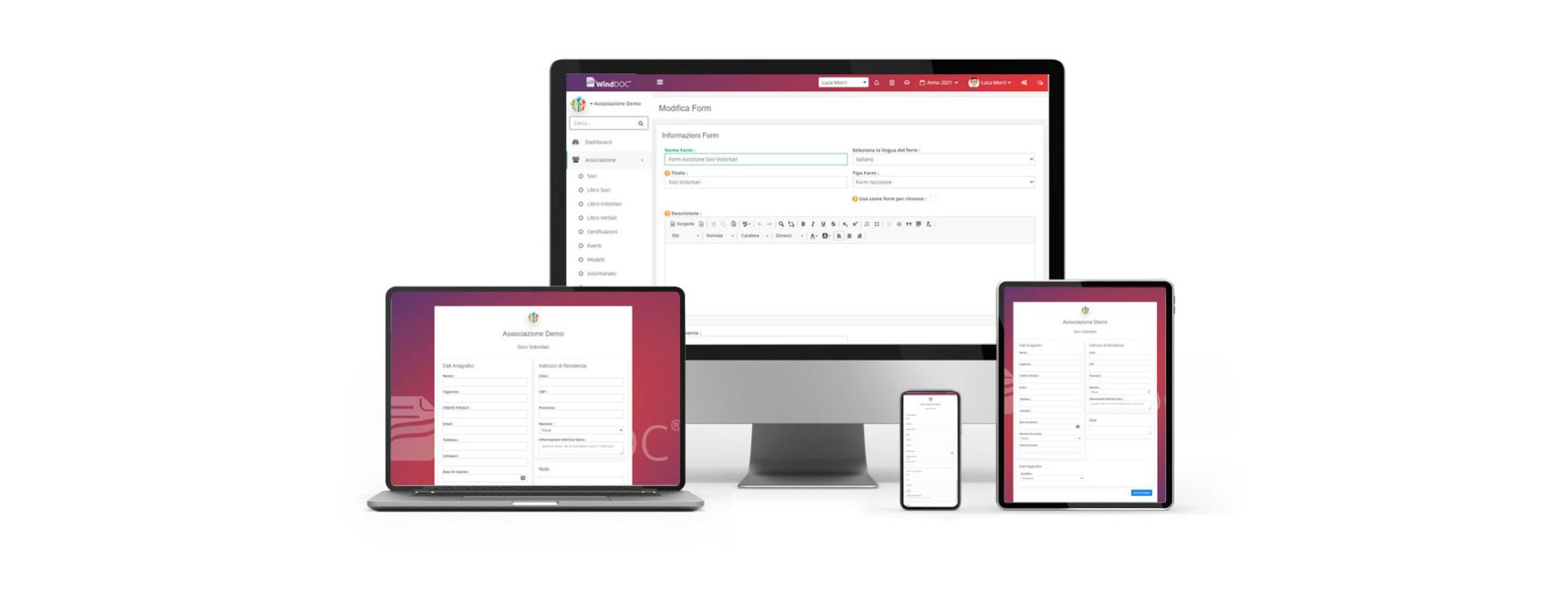 WindDoc No-Profit offre la possibilità di generare moduli d'iscrizione personalizzati, completi di campi dedicati e logo dell'associazione. Questi moduli possono essere condivisi tramite un link dedicato o integrati direttamente nel sito web dell'associazione. È possibile abilitare il pagamento delle quote associative o delle iscrizioni agli eventi, con generazione automatica della ricevuta. Ogni modulo include una privacy policy personalizzata e la possibilità di inviare un'email automatica all'iscritto, contenente allegati o contenuti scelti dall'associazione, come regolamenti o informative. Inoltre, è possibile creare moduli dedicati per ricevere donazioni, generando automaticamente l'erogazione liberale in riferimento al contributo ricevuto.