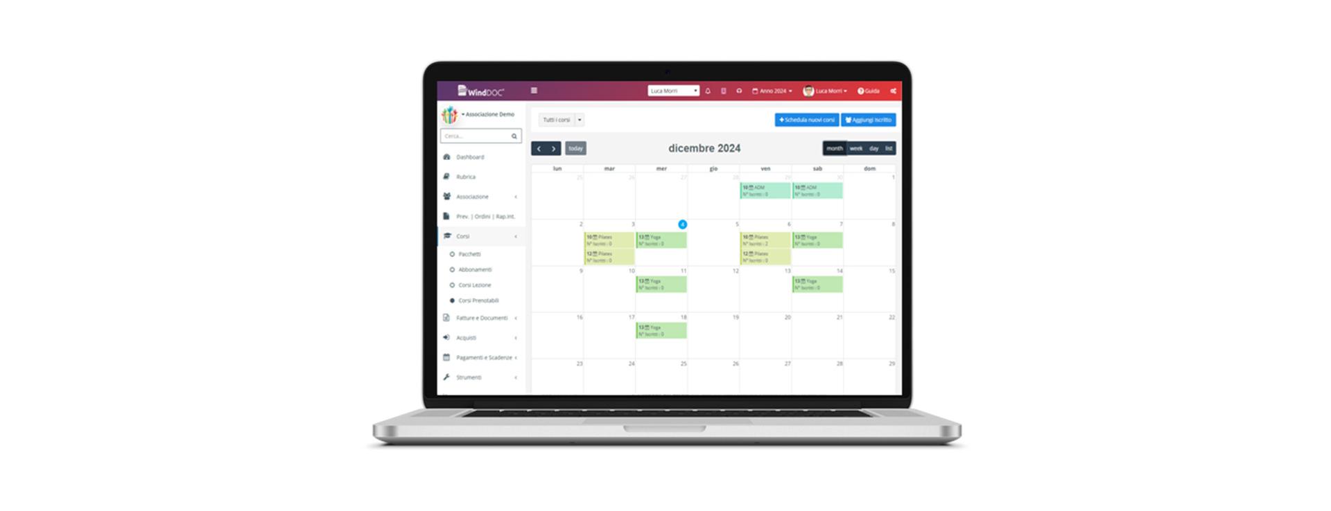 - Corsi Prenotabili: Adatti per eventi o sessioni singole, permettono ai soci di iscriversi individualmente a ciascuna lezione, con la possibilità di utilizzare un sistema a crediti per gestire le prenotazioni.