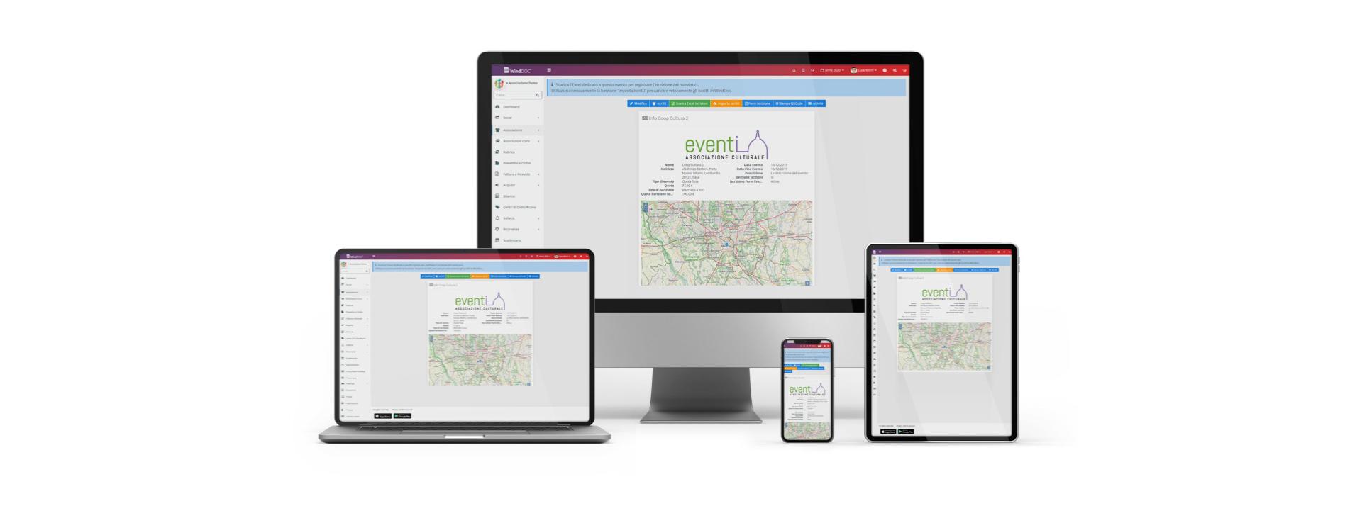 WindDoc No-Profit offre strumenti per semplificare l'organizzazione e la gestione degli eventi associativi. Ogni evento dispone di un modulo di iscrizione online, il cui link può essere inviato via e-mail o condiviso tramite QR code per una registrazione rapida. I partecipanti possono pagare le quote di iscrizione all'evento e, se necessario, la quota associativa tramite PayPal. È possibile registrare manualmente gli iscritti, importando elenchi da file Excel precompilati e inviando automaticamente le ricevute generate.