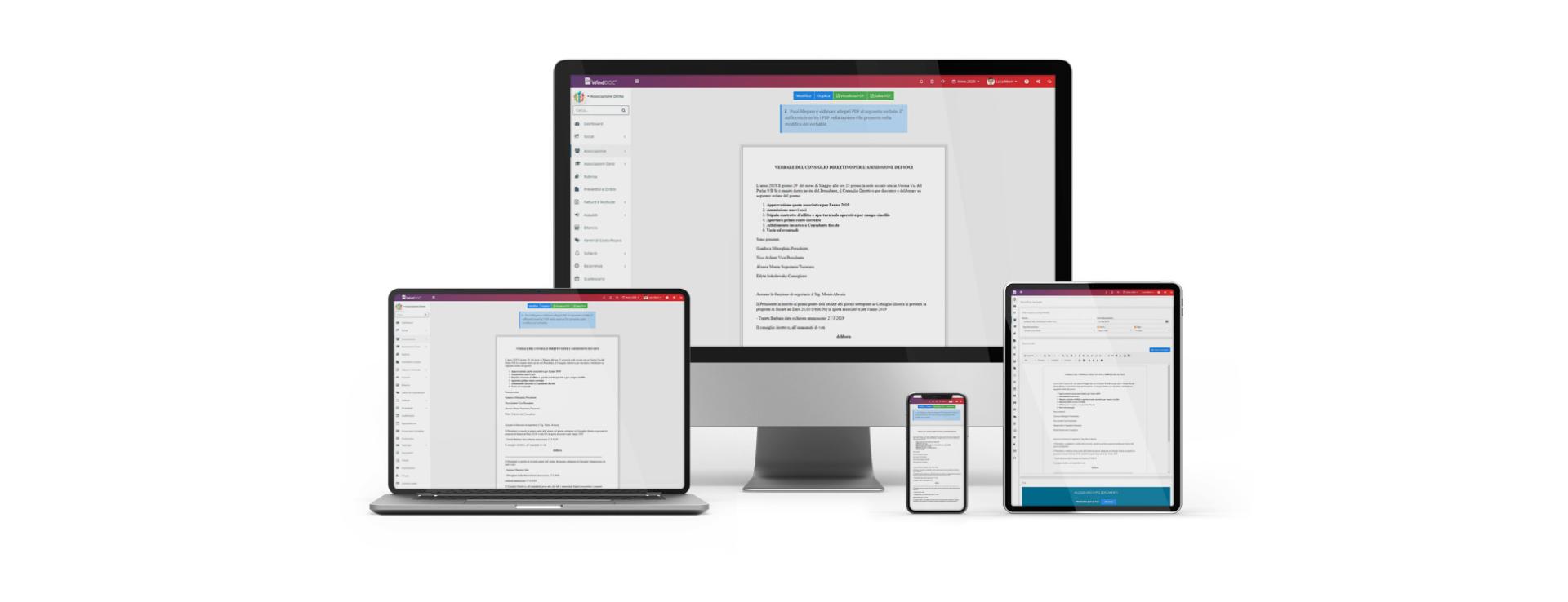 WindDoc No-Profit è un software progettato per semplificare la gestione dei verbali nelle associazioni. Grazie a un'ampia selezione di template suddivisi per tipologia di documento, è possibile generare automaticamente verbali di assemblea e di consiglio direttivo, autocompilati con i dati dell'associazione e le anagrafiche delle cariche sociali. Il libro dei verbali viene conservato in modalità digitale, permettendo di risparmiare carta e spazio di archiviazione. È inoltre possibile allegare al verbale generato eventuali stampe firmate e timbrate. Utilizzando la funzione di backup automatico, WindDoc salva ogni verbale sul cloud di fiducia dell'associazione, come Dropbox, Google Drive o server FTP, garantendo sicurezza e accessibilità