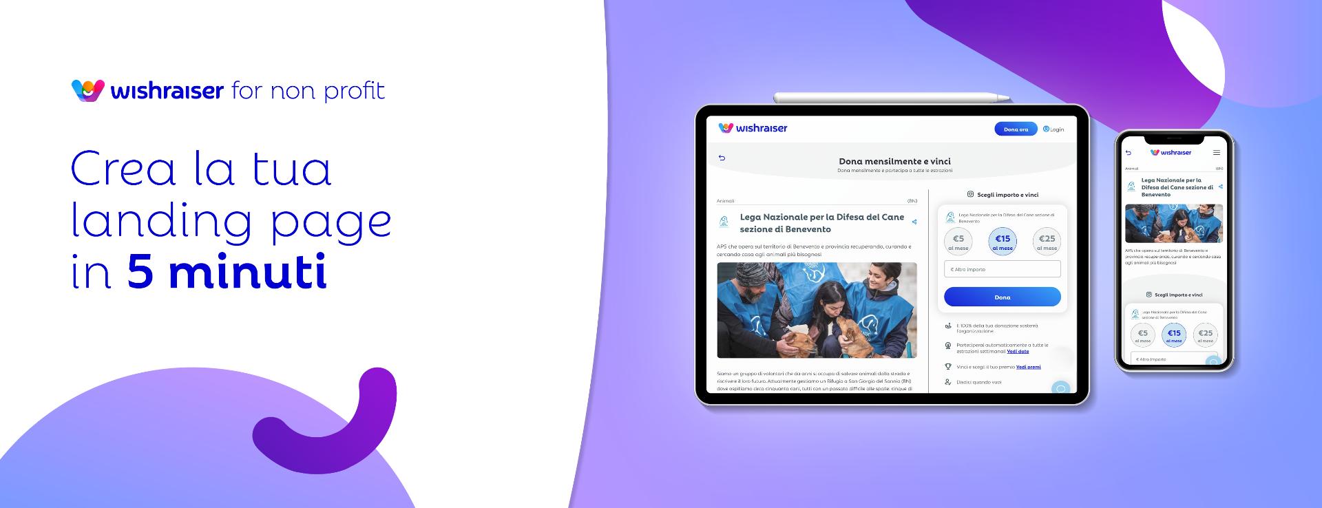 Con Wishraiser for non profit potrai creare e personalizzare in pochi minuti la Landing Page della tua Organizzazione per acquisire nuovi donatori.